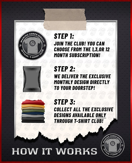 Join the Marine Corps Direct T-Shirt of the Month Club and experience the thrill of receiving an exclusive t-shirt every month! Each design is unique to that month, creating a sense of anticipation as you unveil your exclusive shirt upon delivery. These one-of-a-kind shirts are not available for purchase anywhere else – they're reserved exclusively for club members!